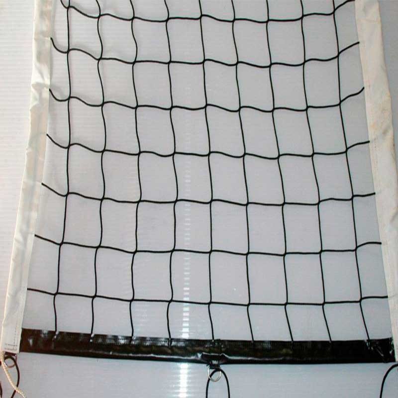 Equipamiento deportivo para voleibol. Red de 3 mm (negra). Cinta de pvc blanca 140 mm en la parte superior, laterales 100 mm negra pvc y en parte inferior cinta 100 mm pvc blanca. Varillas laterales de fibra de vidrio, incluye bandas corredera y antenas. Reciclable, antialérgica, gran tenacidad y resistente a la intemperie, facilidad de montaje.