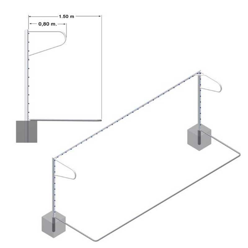 El arquillo superior permiten el descuelgue apropiado de la red. Está fabricado en perfil