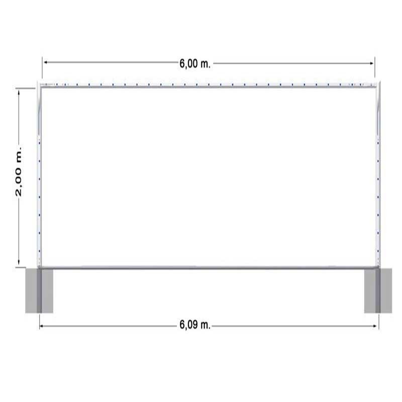 Las dimensiones interiores del marco son 6,00 X 2,00 (medidas FIFA).